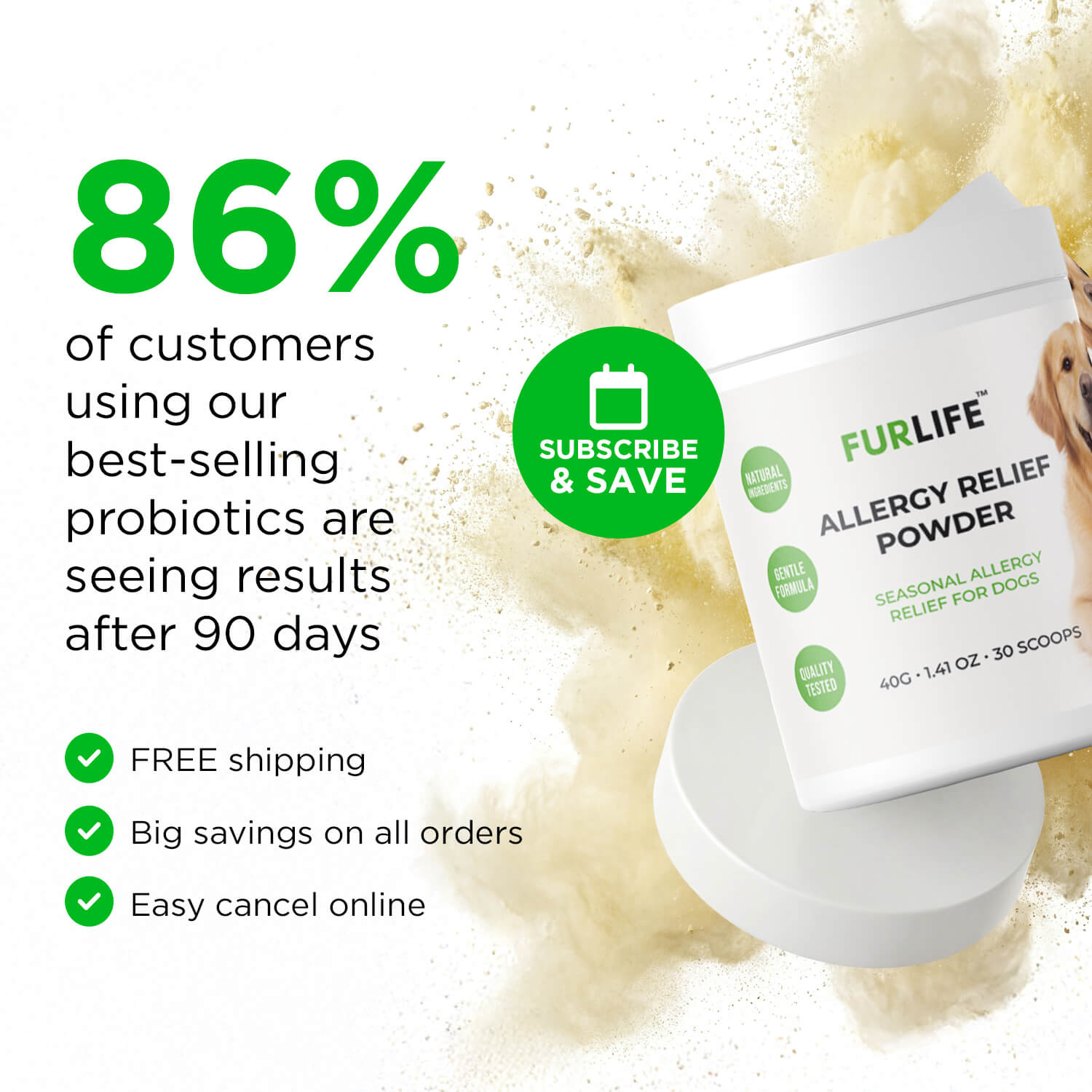 With FurLife™ Allergy Relief Powder, you no longer need to watch your dog suffer through allergy season.