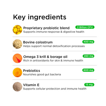 Our proprietary blend of natural probiotics, prebiotics, and postbiotics works deep in your dog's gut – where 70% of the immune system actually lives.